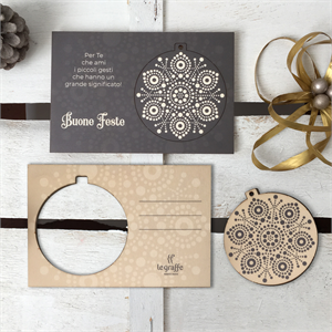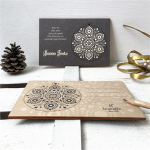 Cartoligna "Fiocco": cartolina in legno con decoro natalizio